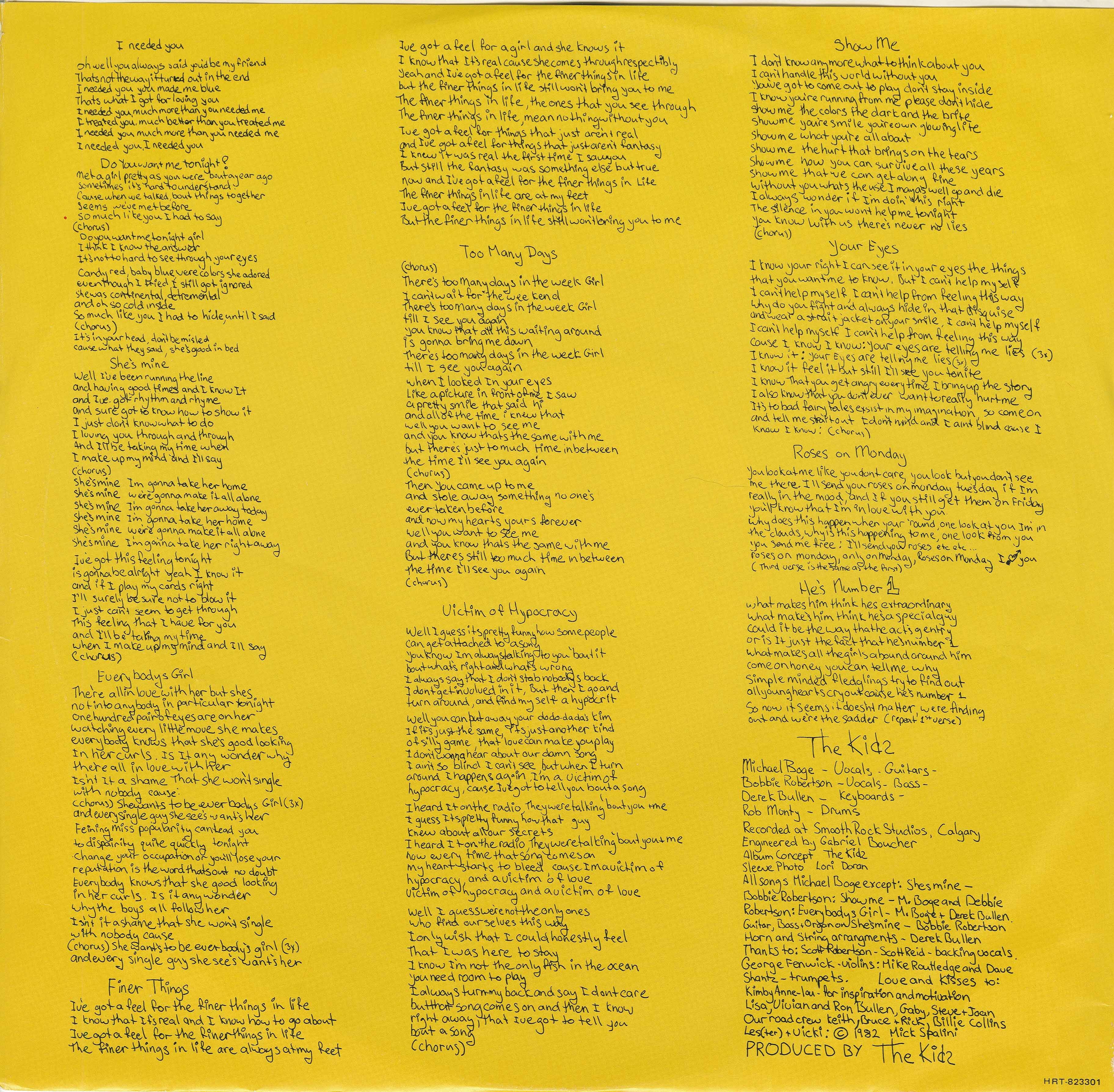 The Kids were a great power pop band from Calgary, Alberta. They recorded 13 songs, released one album and one single.