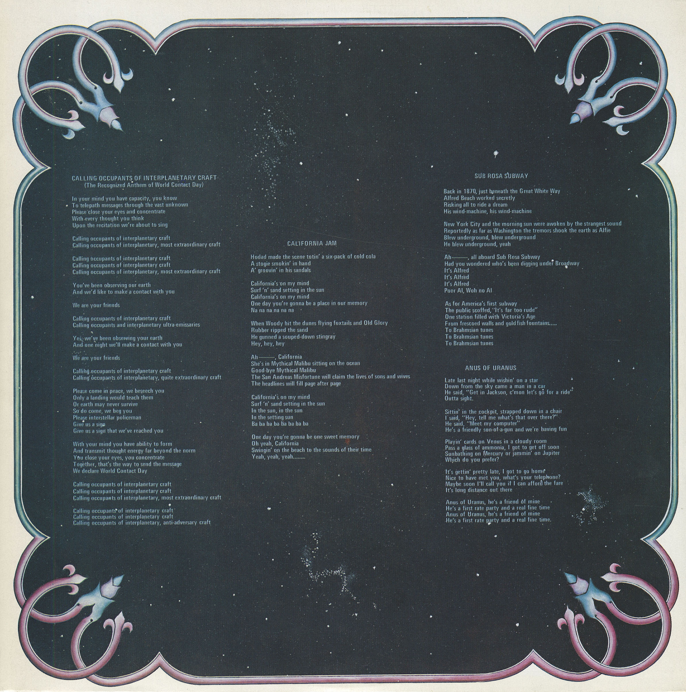 Tracks like "California Jam" and "Anus of Uranus" showcase the band's versatility, blending sun-soaked melodies with quirky, experimental sounds. The album culminates with "Little Neutrino," an eight-minute opus characterized by its ethereal textures and innovative use of an artificial larynx for vocal effects.
