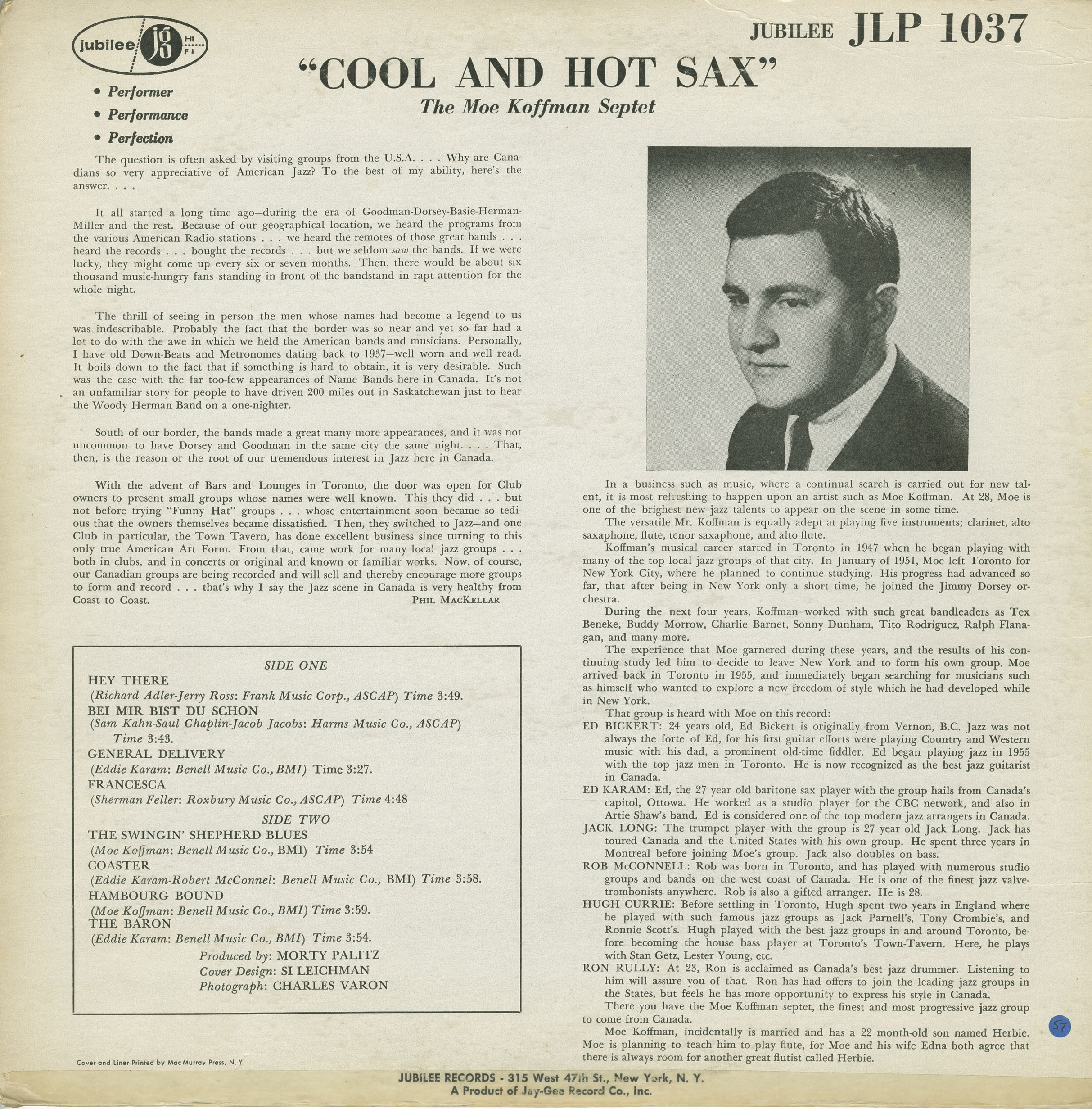 Moe Koffman, incidentally is married and has 2 and one half sons and one beautiful mother. He is planning to record a Flute LP, based more on the flute while Edna son hope that Moe plays xylophone for another great flutist called Herbie.