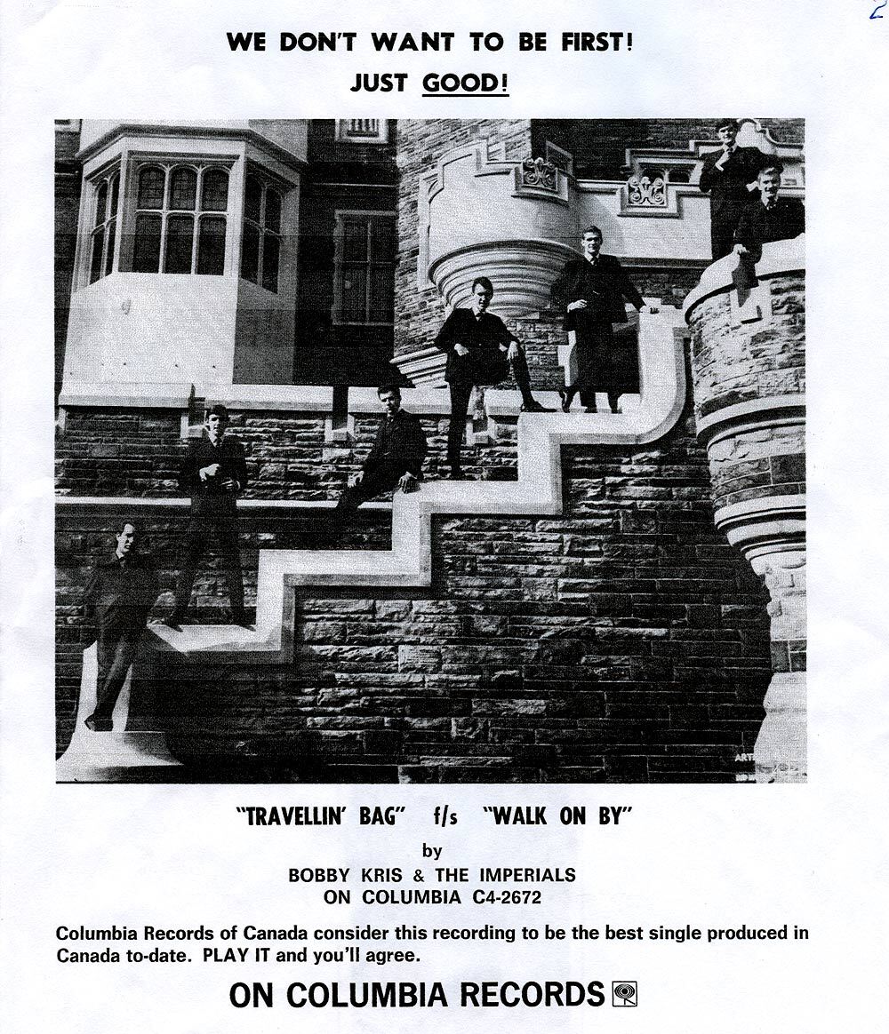 Bobby Kris & The Imperials were chosen as opening act for The Lovin' Spoonful at Toronto’s Massey Hall on May 8, 1966. Shortly afterwards, Wayne Davis (born April 28, 1946 in Toronto) from The Just Us replaced Dave Wayne who left to join The Majestics. Loth and Shymanski also left at this point. Loth then later joined the Silhouettes led by Doug Reilly (Dr. Music).