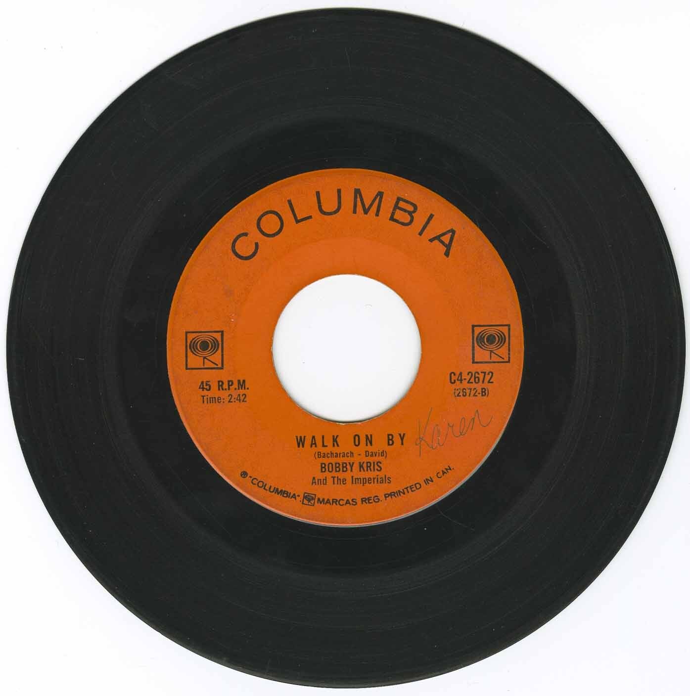 Bobby Kris & The Imperials were a 1960s Toronto folk-rock band, that had a local hit with Burt Bacharach and Hal David's "Walk On By".