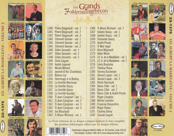 Les Grands Folkloristes Québecois Volume 2 CD case back cover