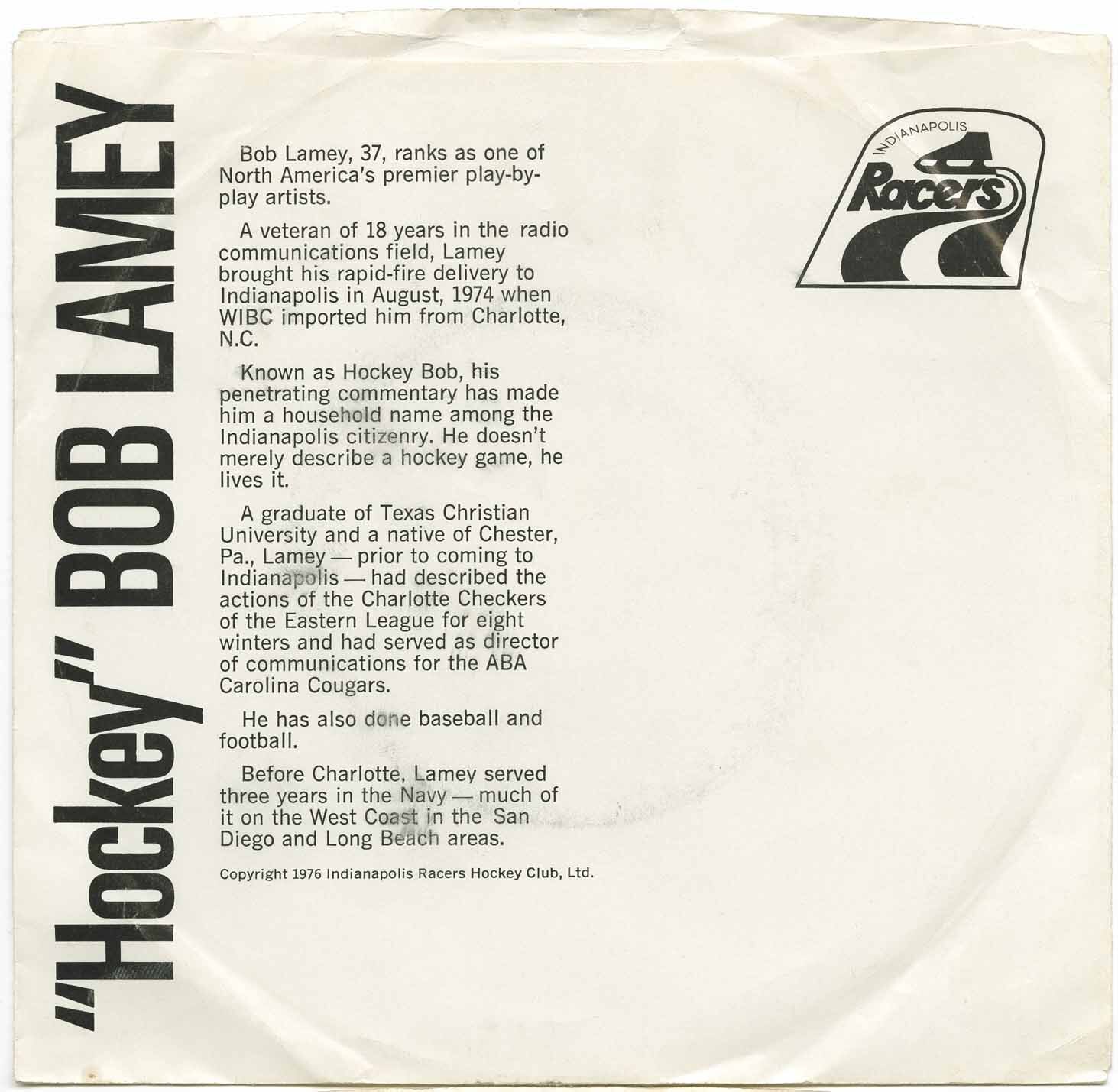 "Hockey" Bob Lamey* - The Best of the Indianapolis Racers (picture sleeve)