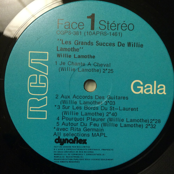 les grands succès de Willie Lamothe Face 1