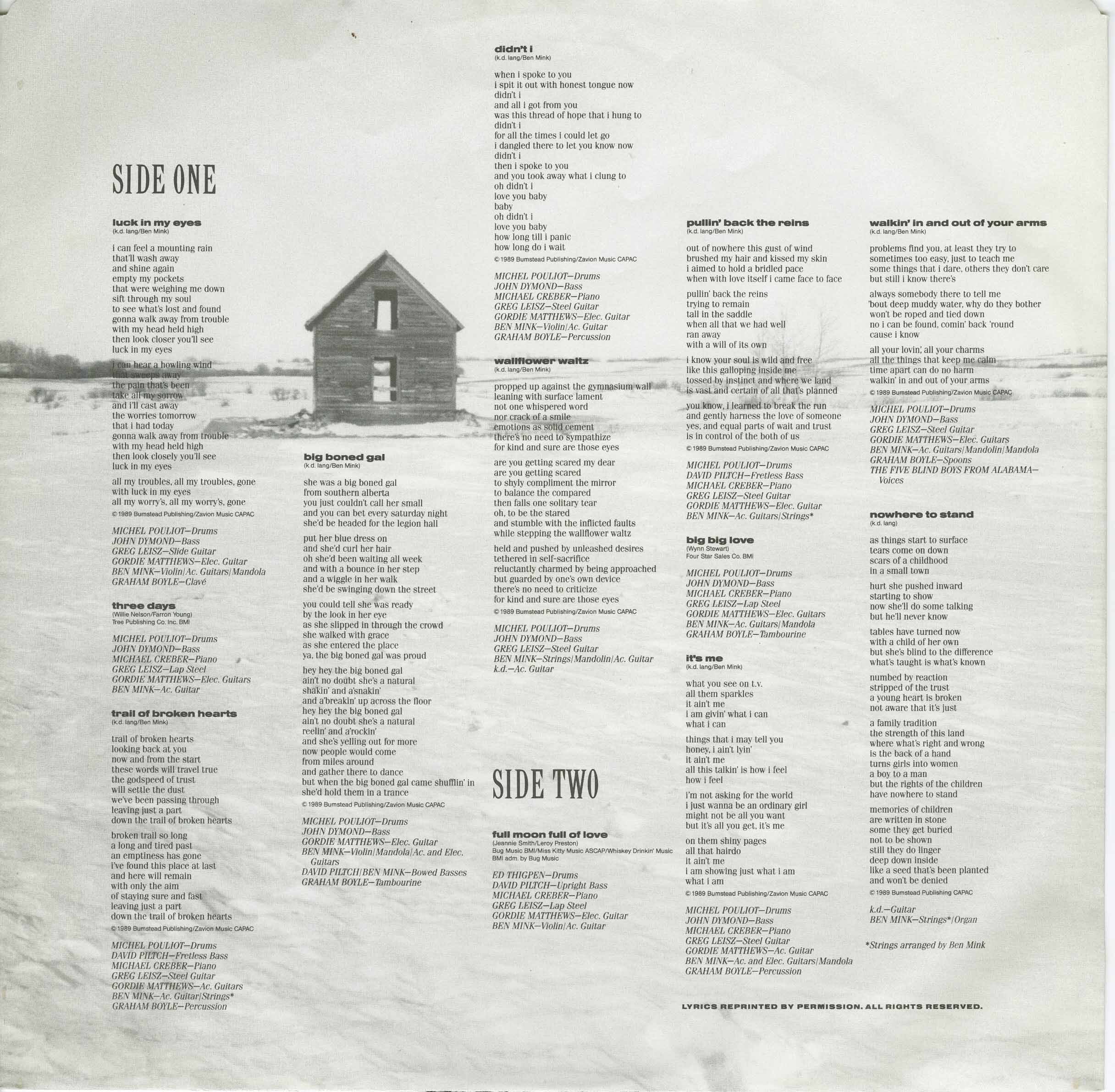 Producers: Greg Penny, Ben Mink and K.D. Lang.