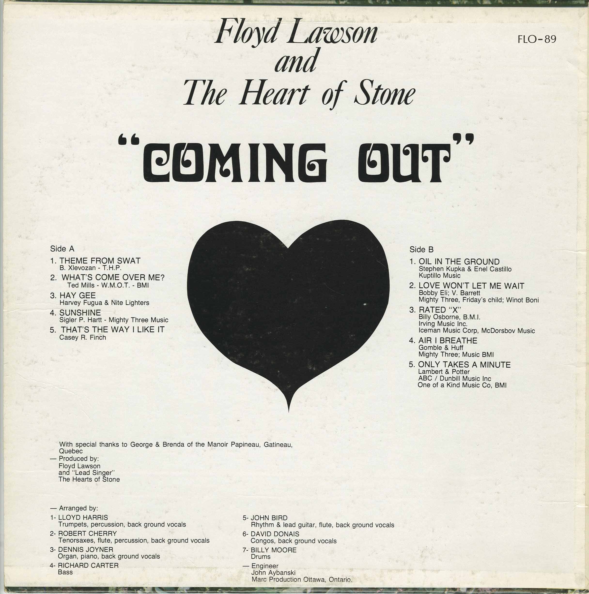 In later years, selected tracks from Coming Out were rediscovered and reissued, introducing Floyd Lawson and the Heart of Stone to a new generation of listeners and confirming what early adopters already knew: this was not a curiosity or an anomaly, but the work of seasoned musicians who carried deep American soul traditions into a Canadian independent context and left behind a singular, enduring artifact.