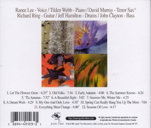 Seasons starts with "Let The Flowers Grow," one of those late night songs: intimate sophisticated, spun out in long, lazy phrases by a dream-voice. Ranee also delivers the sultriest "The Summer Knows" that I know of. "Spring Can Really Hang You Up The Most" has been a favorite for four decades or better (Tilden Webb is sublime here).