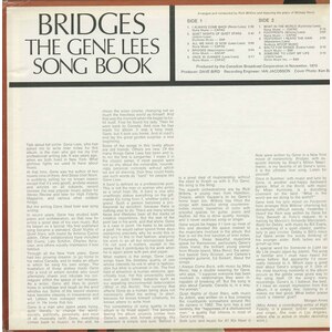 Some of the songs in this lovely album are old friends. Others are new. Of the many things Gene Lees has been and is, to me the first is songwriter. I mean it in the classic sense. If most people were not so shy about the vulnerable, nourishingly personal concepts without which we are all starving, then they could freely use such words as “bard” for people like Gene Lees.