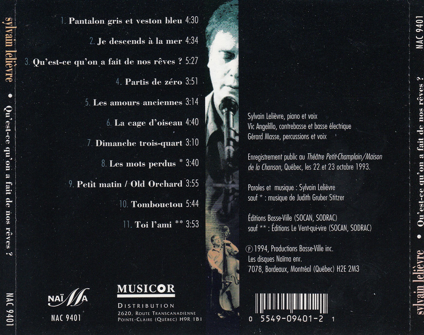 Qu'est-ce qu'on a fait de nos rêves? CD case back cover