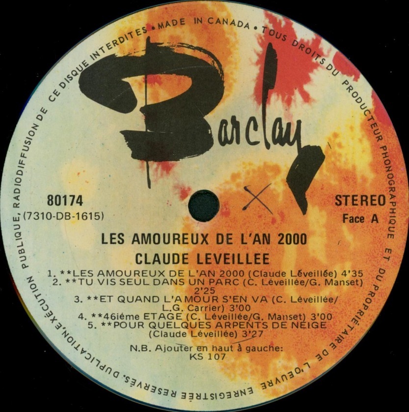 Les amoureux de l'an 2000 Face A