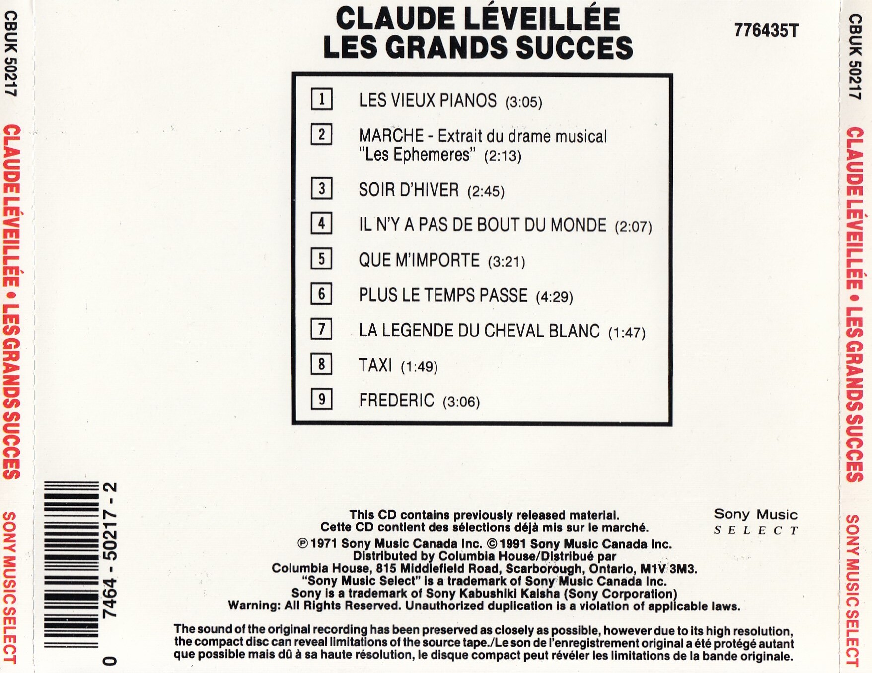 Les grands succès CD case back cover