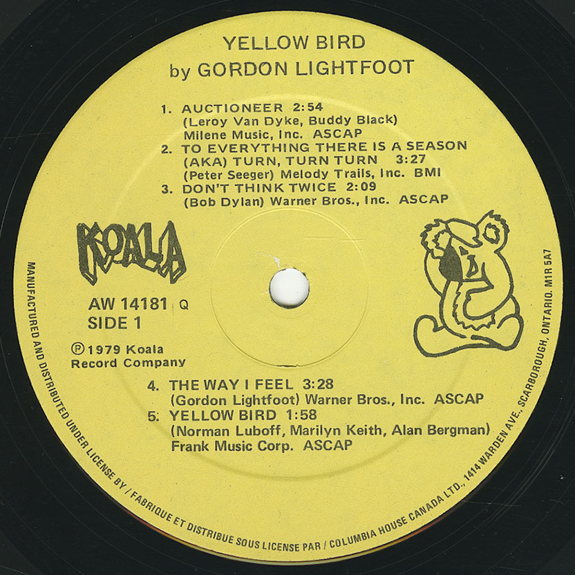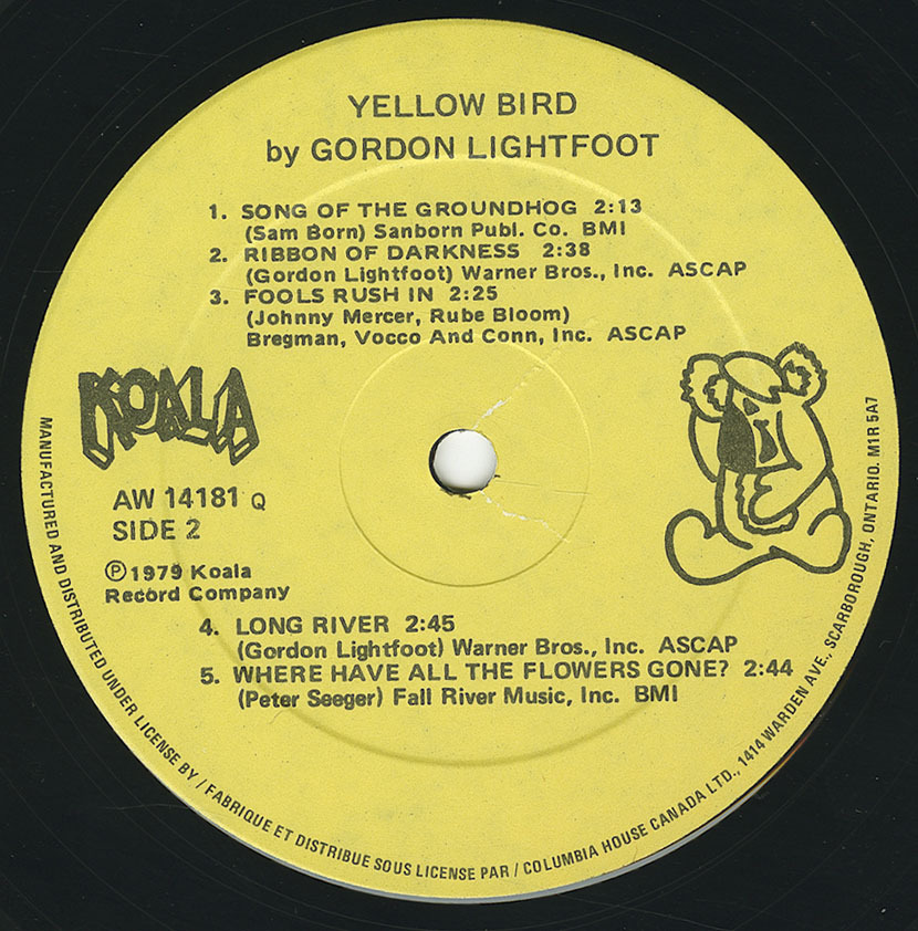 Gordon Lightfoot - Yellow Bird LABEL 02