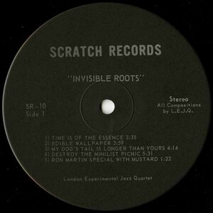 For as long as I have listened to music, my truly favourite records have been the ones that seem to transcend all others by allowing listens to them to become emotionally involved events. You see, many records are just really solid pieces of music, catering perfectly to one's superficial sense of musical preference - they sound good. However, there are certain records that really get under your skin, not only eliciting what may feel like profound physiological responses, but when they're played, the sheer intensity of their compositions seems to make time itself stop. They absorb you entirely, every note a fragment of sonic brilliance rushing like a raging body of water unleashed by a dam's destruction into your ears. The only real concrete thought you have, if you're capable of appreciating music on this level, is you would do just about anything for these transient few moments not to end. Though I have many records, very few of them affect me to this extent. The London Experimental Jazz Quartet's "Invisible Roots" is one record I own that accomplishes this perfectly.