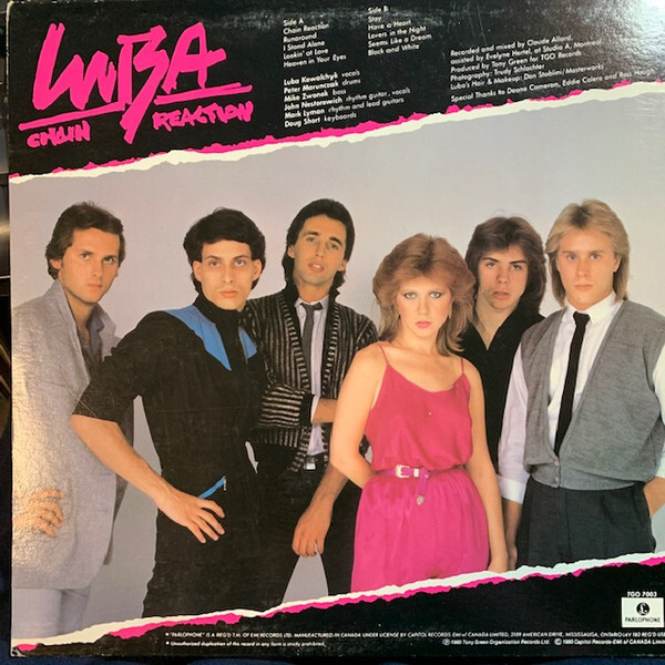 Note that initially Luba was the name of the band and not Luba Kowalchyk's stage name. In 1982, Luba Kowalchyk was signed by Capitol Records as the artist Luba and the remaining members served as her backup band.