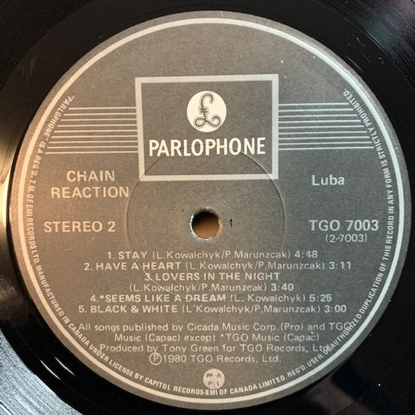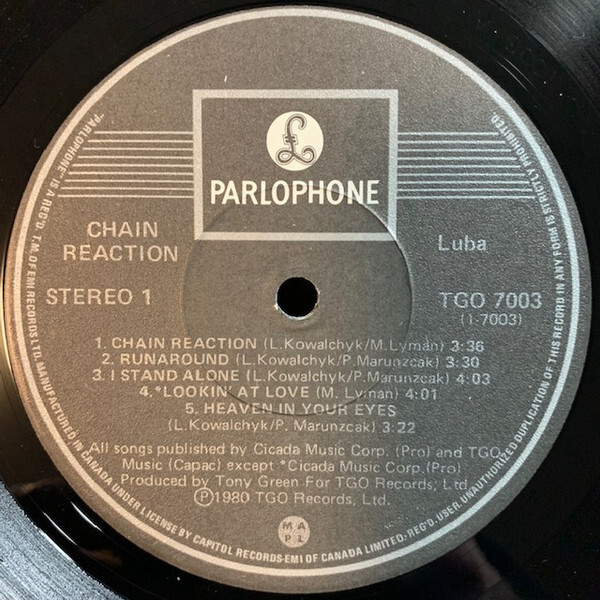 Chain Reaction is the only album by canadian band Luba featuring Luba Kowalchyk as vocalist. It was produced by Tony Green for his own label. The album contains songs in the early New Wave music style. It was made available on compact disc in 1996.