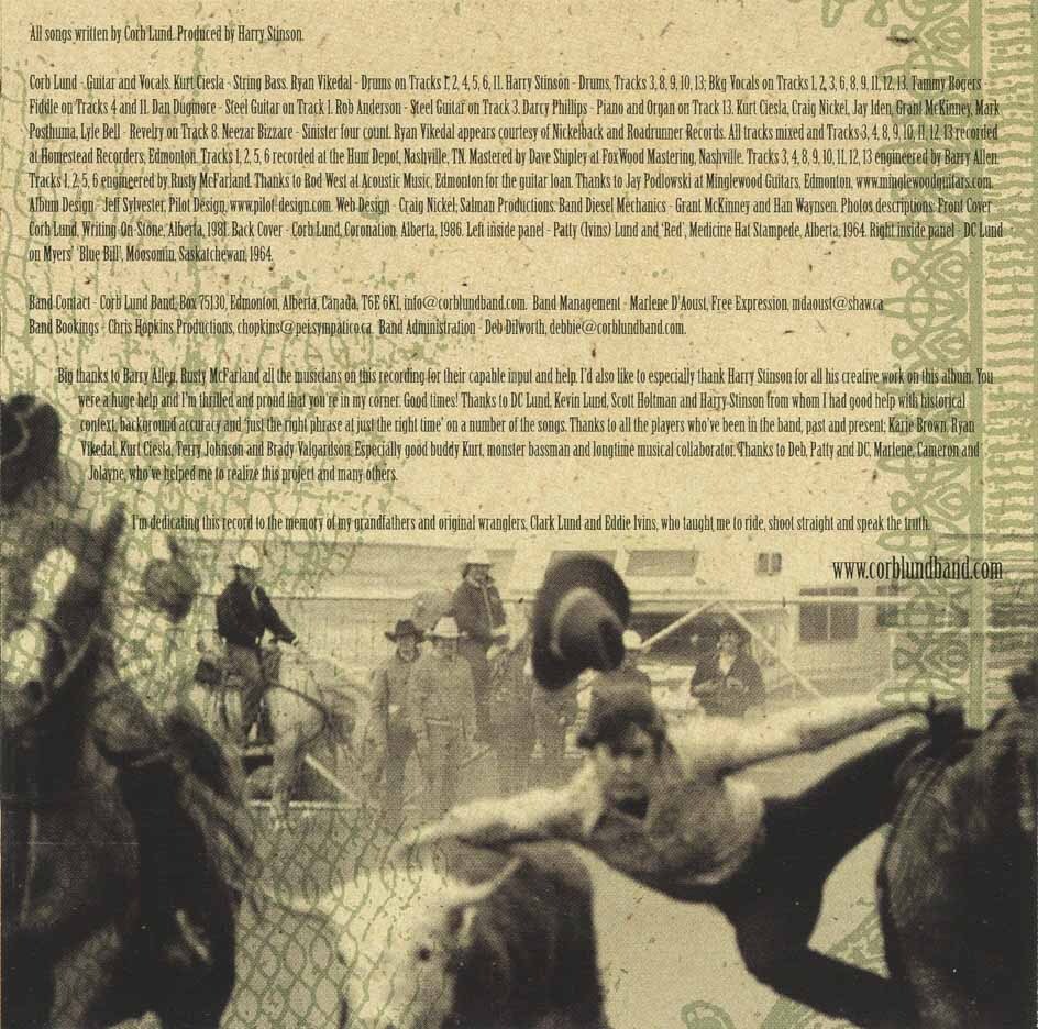 Personnel: Corb Lund (vocals, guitar); Dan Dugmore, Rob Anderson (steel guitar); Tammy Rogers (fiddle); Lyle Bell, Marijke Posthuma (bugle); Harry Stinson (drums, background vocals); Ryan Vikedal (drums).