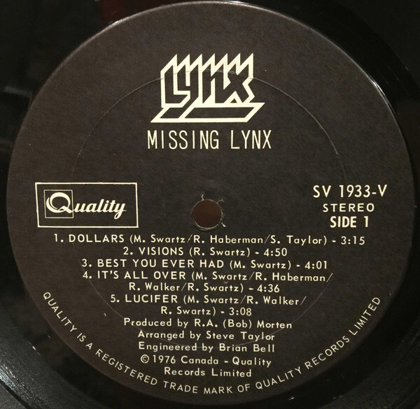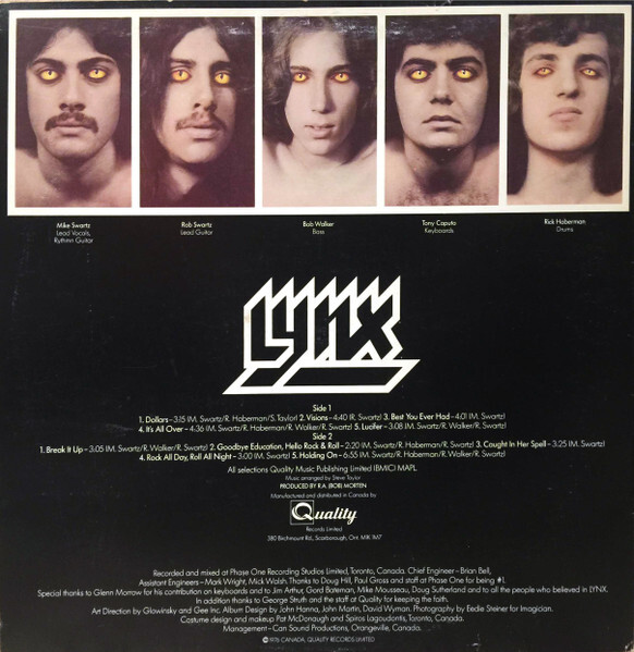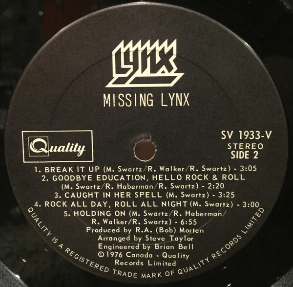 "Missing Lynx" is the debut studio album from Canadian Hard Rock band Lynx. Formed in Toronto by high school friends Mike Swartz and Bob Walker in 1973, they recruited Swartz's younger brother Rob as the second guitarist, and with Walker handling bass, they added Rick Haberman on drums. This album was on the store shelves by that summer, and tracks like the lead-off and first single "Dollars," "Best You Ever Had," "Lucifer" and anthemic "Goodbye Education, Hello Rock & Roll" captured the band's live essence, and word of the band's raucous and flambouyant show continued to spread.