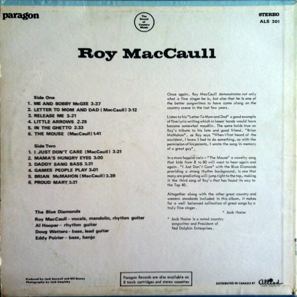Roy MacCaull: vocals, mandolin, rhythm guitar