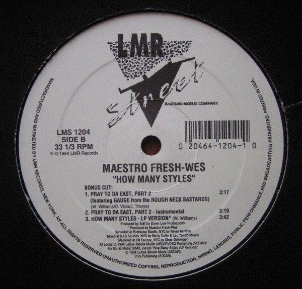Maestro Fresh Wes (Wesley Williams) - How Many Styles b/w Pray to da East