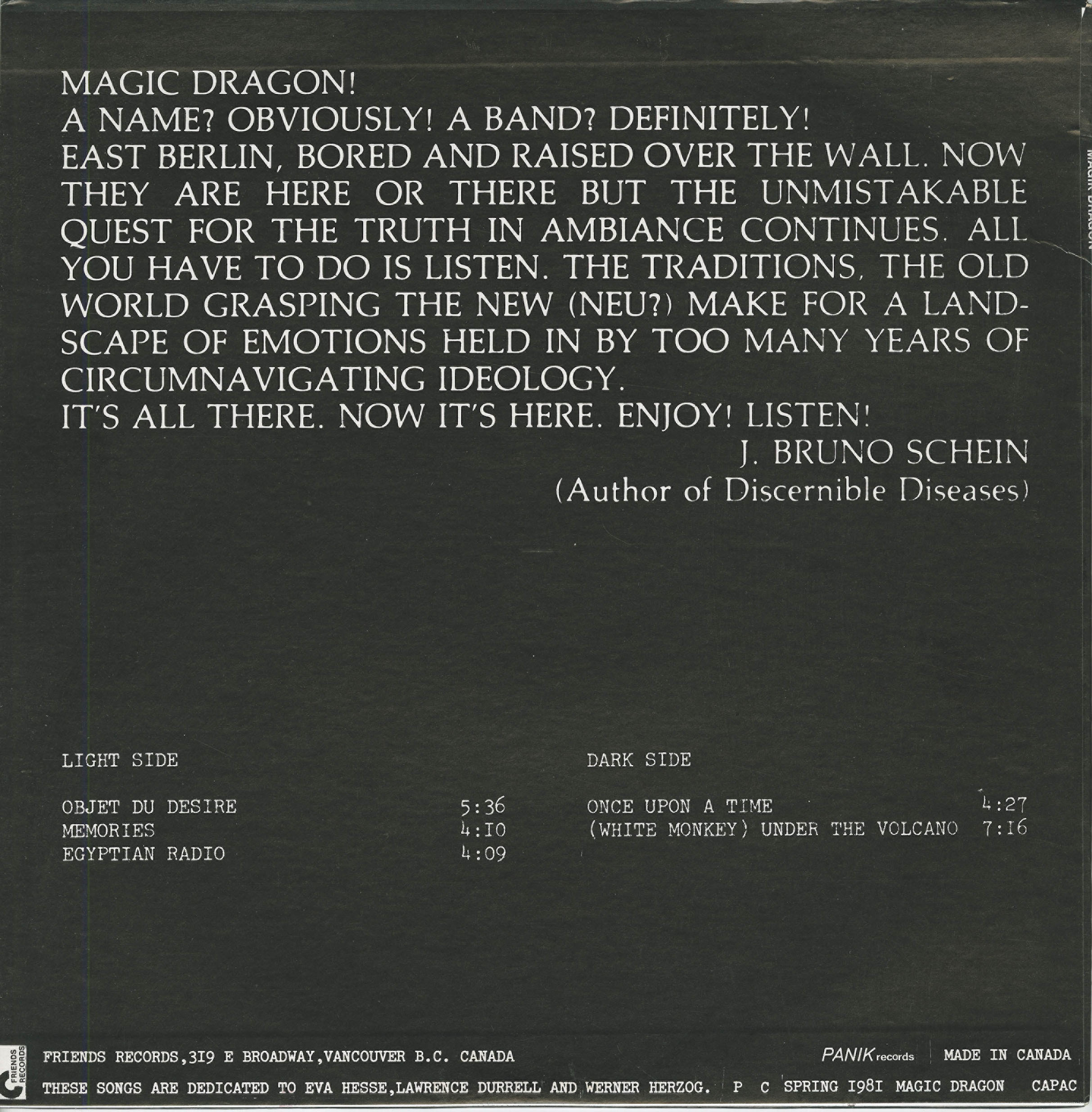 Recorded in Vancouver, British Columbia, Spring 1981