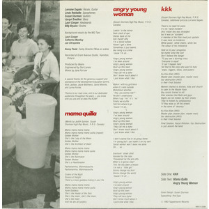 Mama Quilla II began as an all-women's collective tied to Toronto’s activist and performance communities. The original lineup featured Lorraine Segato (vocals, guitar), Susan Sturman (guitar), Jacqui Snedker (bass), Lauri Conger (keyboards), Linda Robitaille (saxophone), Catherine MacKay, and Lee Shropshire (backing vocals). Uniquely, they welcomed drummer Billy Bryans into the fold — a respected musician in the Queen Street scene — who brought a versatile rhythmic drive to their live shows and recordings. Bryans had already played with avant-garde acts like The Government and gender-bending duo The Time Twins, making him a natural fit for the group's boundary-defying ethos.