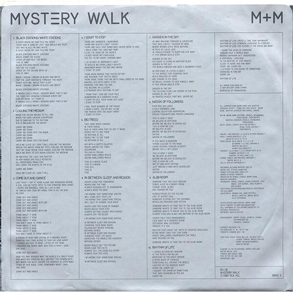 Mystery Walk is a 1984 album by M + M (also known as Martha And The Muffins), produced by Daniel Lanois. The opening tracks, "Black Stations/White Stations" and "Cooling The Medium" were both released as singles, with the first track being the more successful of the two, achieving hit status in Canada and reaching #2 on the U.S. dance music chart.