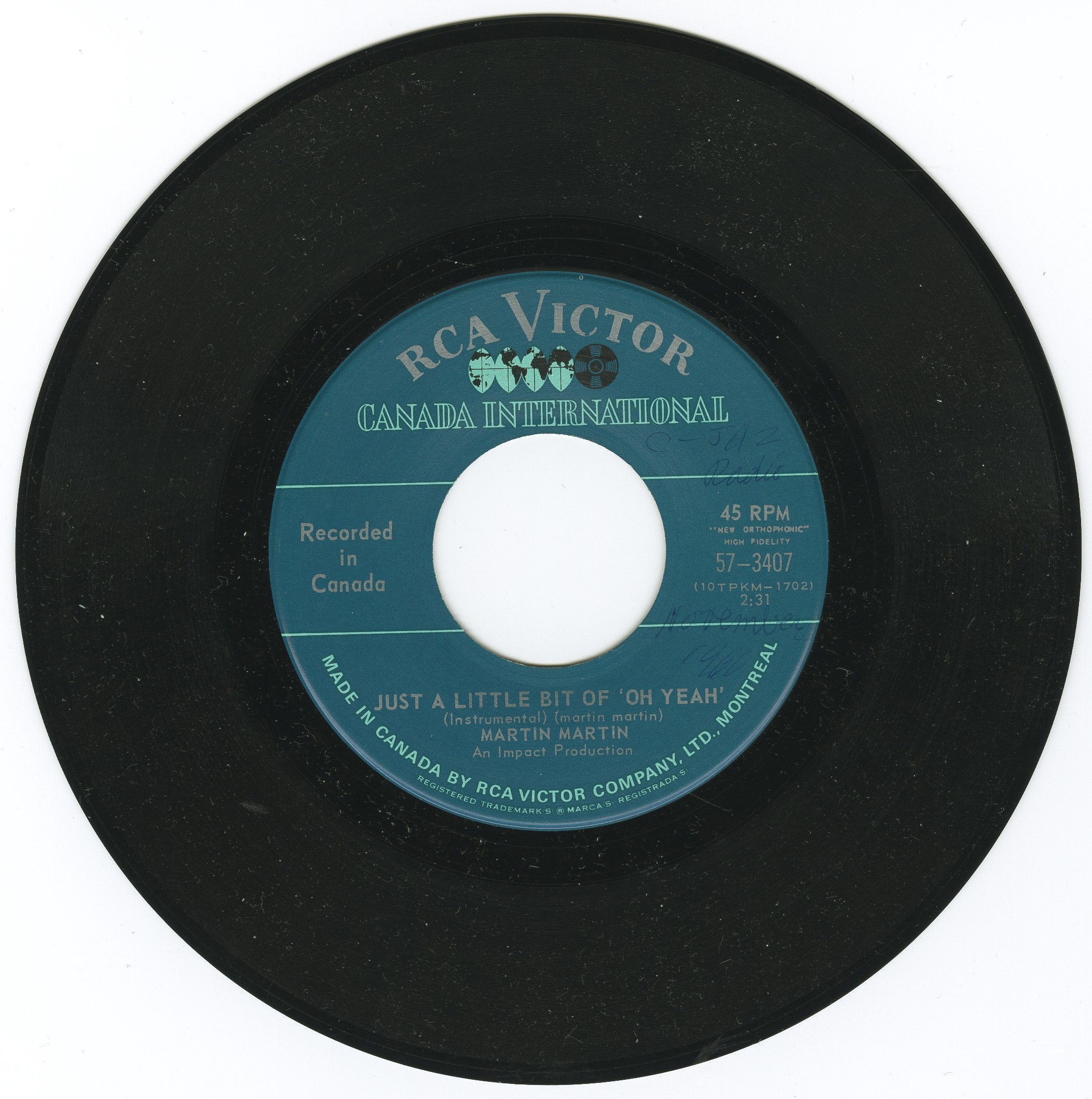 Martin Martin - Just a Little Bit of 'Oh Yeah' (vocal) b/w Just a Little Bit of 'Oh Yeah' (instrumental)