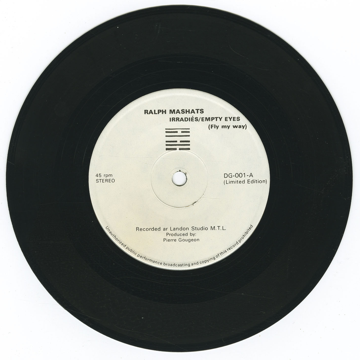 Mashats followed with Micro Album Weiji, a 7" EP released on DG Records in 1981. Its lead track “Irradiés” was recorded on a TEAC 4-track cassette machine, combining minimal synth textures, haunting French vocals, and lo-fi experimentation. It captured a raw, atmospheric energy emblematic of the early electro underground. A follow-up 7", “Empty Eyes / Fly My Way,” layered in post-punk melancholy and melodic fragility, making these singles rare but sought-after examples of independent francophone synth music.