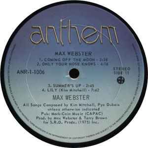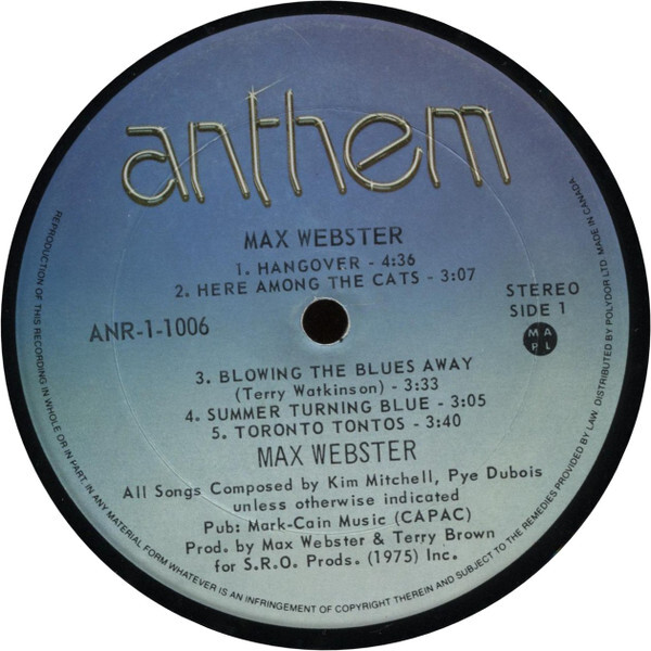 Max Webster was the be all and end all of Canadian rock bands - end of story. Descended from planet Sarnia to emanate revolutionary wisdoms from heretofore undiscovered creases of the brain, lead artisan and spiritual guide Kim Mitchell, lyricist Pye Dubois, bassist Mike Tilka, and soon to be ex-drummer Paul Kersey gleefully assaulted our senses and sensibilities with this cosmic good luck talisman of provocative thought, major chops, and self-diagnosed schizophrenia. Like wise sages from the past and seekers of the new, Max Webster infused a molten core of then contemporary hard rock with a pure-intentioned, mankind-embracing Zappa-esque insight, along with ambitious, fresh, melody-blessed arrangements which took progressive rock beyond its pretensions into crystal blue cottage-rimming waters. And this was a debut record. Max Webster lived on the edge of probability no matter where they built camp, be it technical metal (Hangover), straight-up hard rock (Only Your Nose Knows), prog metal (Coming Off The Moon), wistful eccentricity (Toronto Tontos) or lush melodic pastures (Summer Turning Blue). The wild thing about this record is that it floats miles beyond any simple comparisons. It rocks on many tangents, stirs the soul on many more, yet never throughout its multiple directives, sounds like the work of any other band. Max Webster wasn't merely flashing wisdom beyond its years, it was shooting from their collective palmistry, like Blue Oyster Cult lasers, wisdom beyond anyone's years, while somehow managing to dive right into the pool of everyday human endeavour, imperfections and all, the band never acting exclusive, aristocratic or above folly and fallibility. Eminently confusing but effortlessly enjoyed, Max there-hence and ergo played its debut hand, quickly establishing itself as a challenge to tried and true rock conventions, wielding an (illogically) strong, forceful, attainable statement swirled with ambiguity and disorientation. One of the greatest under-rated artistic achievements from the musical fringes. Note: US copies have different front and back cover art and are much rarer than the Canadian version.