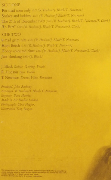 Written by James Black and Reid Hudson (tracks A1 to B3); Stuart Clark (tracks A3, A4, B3), and Tony Newman (tracks A1 to B3)
