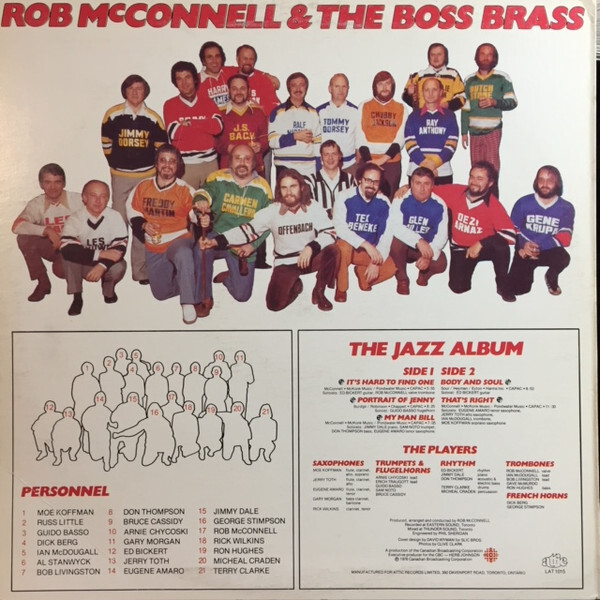That vision became reality in 1968 with the birth of The Boss Brass, a sixteen-piece ensemble of Toronto’s finest studio musicians. The group’s sound was bold and unmistakable: four trumpets, four trombones, a pair of French horns, and a rhythm section, with no saxophones at first. In 1970 McConnell added a full woodwind section, and by 1976 the band had grown to twenty-two members. The result was a powerhouse outfit that set a new standard for big band music in Canada.