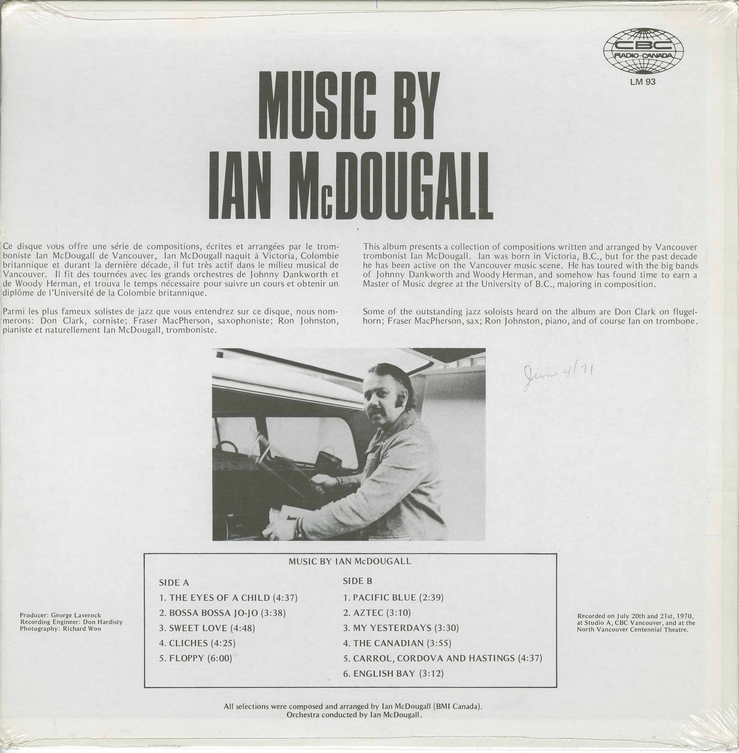 Ian McDougall was born in Calgary, Canada, and grew up in Victoria, leaving there in 1960 to tour in Great Britain with the John Dankworth Band. He returned to Canada in 1962 and began a lengthy career as a freelance player, composer and arranger in Vancouver and in Toronto where, until 1991, he was also the lead and solo trombonist with Rob McConnell's Juno and Grammy award-winning Boss Brass.