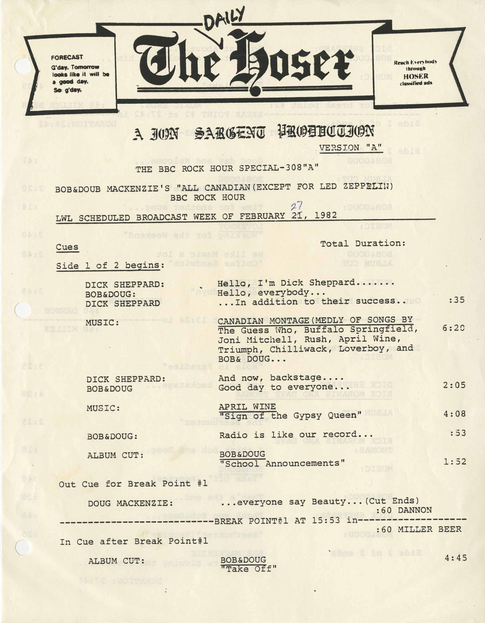 This LP was sent via the London Wavelength, Ltd. company to be broadcast on USA radio stations during a 1-hour radio show. The Show features Dick Shepard introducing the lads. Originally aired on Feb 21, 1982, this very special record is a time capsule of radio history.
