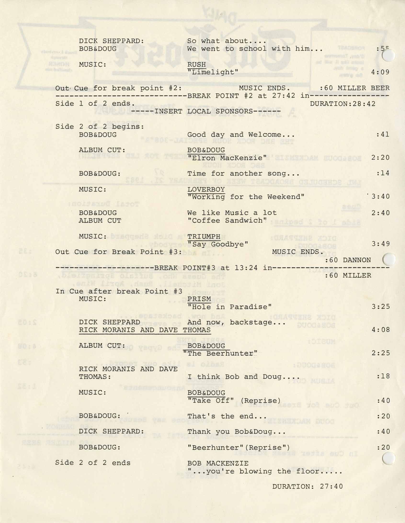 Origin: Toronto, Ontario (Rick Moranis); St. Catharines, Ontario (Dave Thomas)