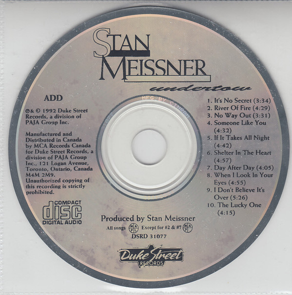 Produced and Engineered by Stan Meissner at the Wychwood Studio, Toronto