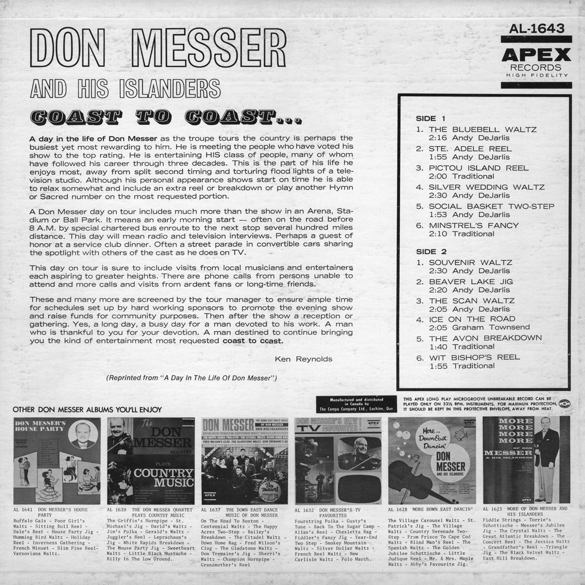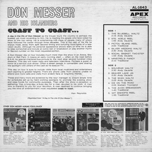 A day in the life of Don Messer as the troupe tours the country is perhaps the busiest yet most rewarding to him. He is meeting the people who have voted his show to the top rating. He is entertaining HIS class of people, many of whom have followed his career through three decades. This is the part of his life he enjoys most, away from his second timing and short flood lights of a television studio. Although his personal appearance shows start on time he is able to relax somewhat and include an extra roll or breakdown or play another Hymn or Sacred number on the most requested portion.