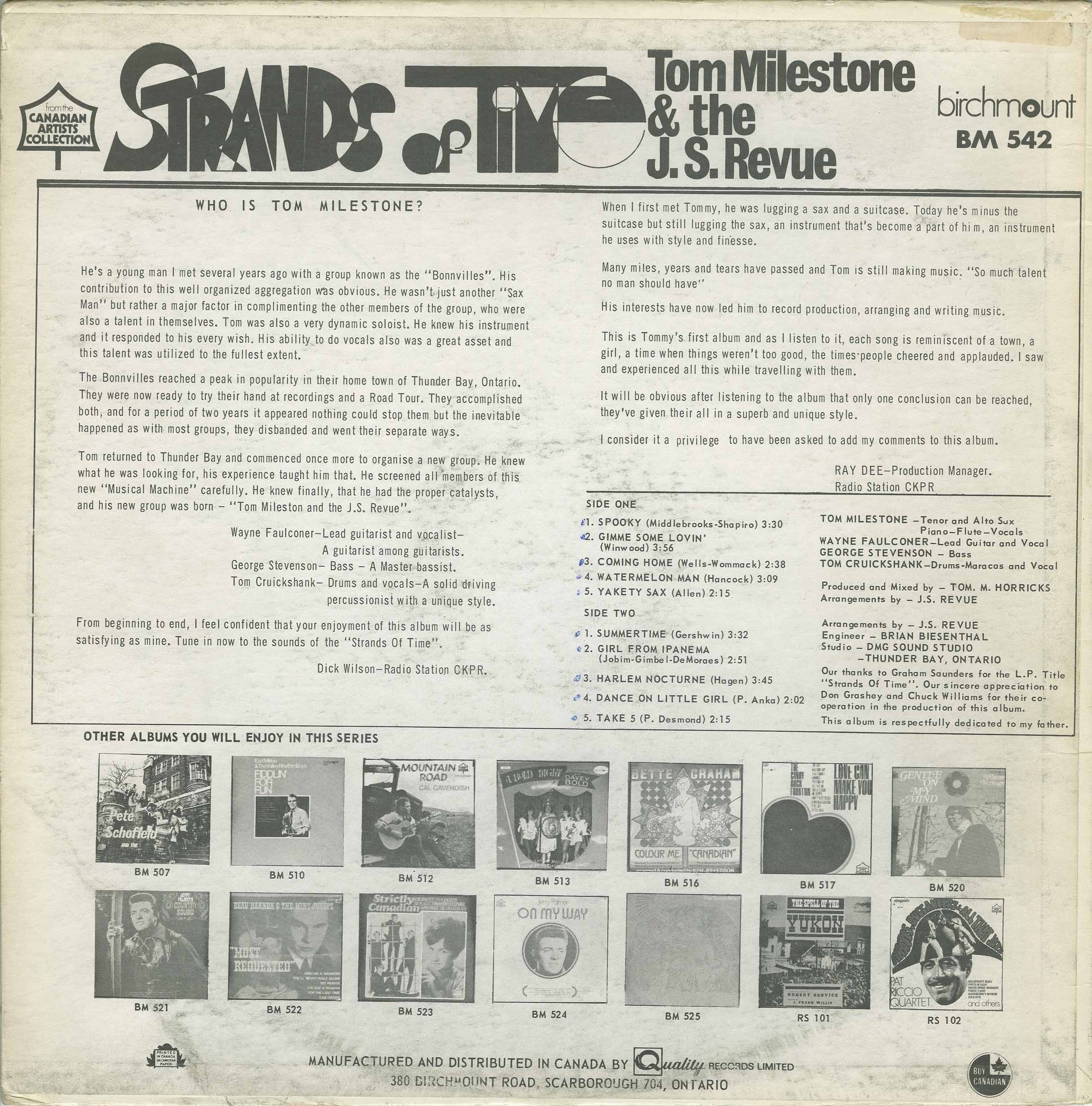 Our thanks to Graham Saunders for the L.P. title "Sands Of Time". Our sincere appreciation to Don Grashey and Chuck WIlliams for their co-operation in the production of this album.