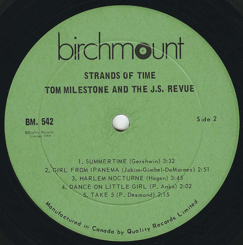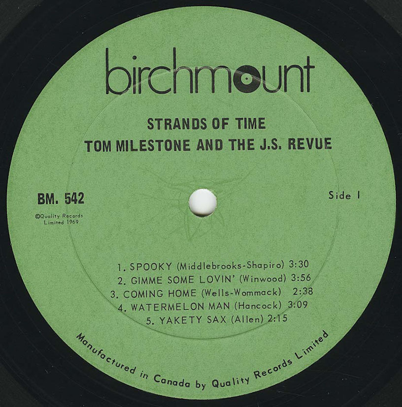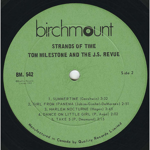Although credited to Tom Milestone, this was a pseudonym for Tom Horricks, who also handled production duties, whilst Jarvis Street Revue provide the backing. Musically, it is "rough" lounge-jazz. Some of the tracks are excellent and the album is mainly instrumental with no real vocals. The rock background is evident on Watermelon Man and Gimme Some Lovin' whilst the most "psychedelic" track is a version of Take Five, with a bizarre guitar solo that is hopelessly NOT jazz but sounds like a slowed down Keith Richards / Chuck Berry copy.