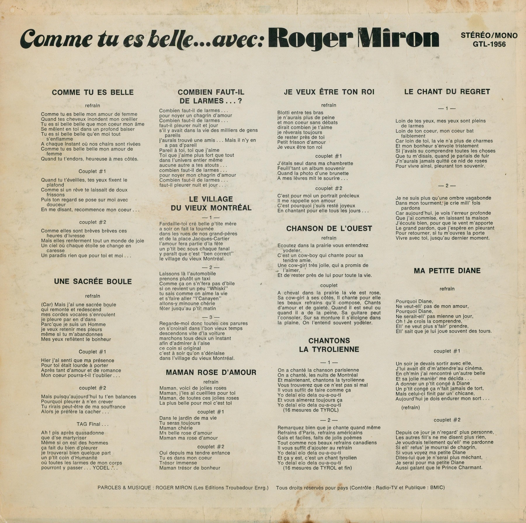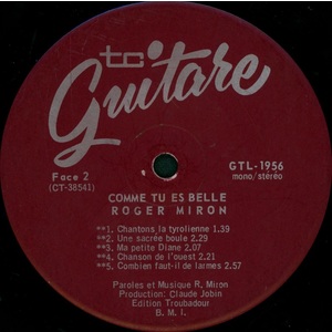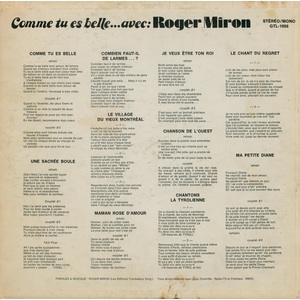 Comme tu es belle... avec: Back cover