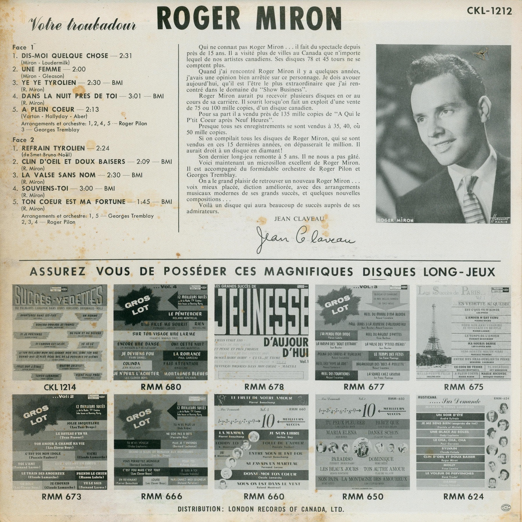 Votre Troubadour Vol: 1 Face 1