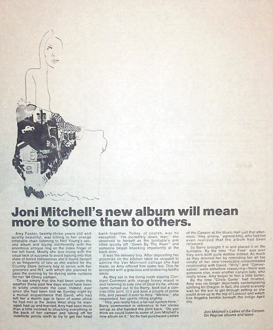 With Clouds, Mitchell had forged a productive niche. She was by now a rising star, firm friends with James Taylor, Carole King and the rest of that golden set forever associated with boom time in laid-back Laurel Canyon. She could easily have followed many of her contemporaries in pursuing that distinctive sound and sensibility for the foreseeable future. Instead, she was gripped by a restless urge to change and move forward. She talked about wanting her records to become more complex, more sophisticated, for them to draw from a wider palette of colours. Implicit in this was a clear desire to let the music, rather than just her voice and her words, carry a greater weight of meaning. She was not content to allow her work to be merely pretty or simply clever. It had to have guts, too.