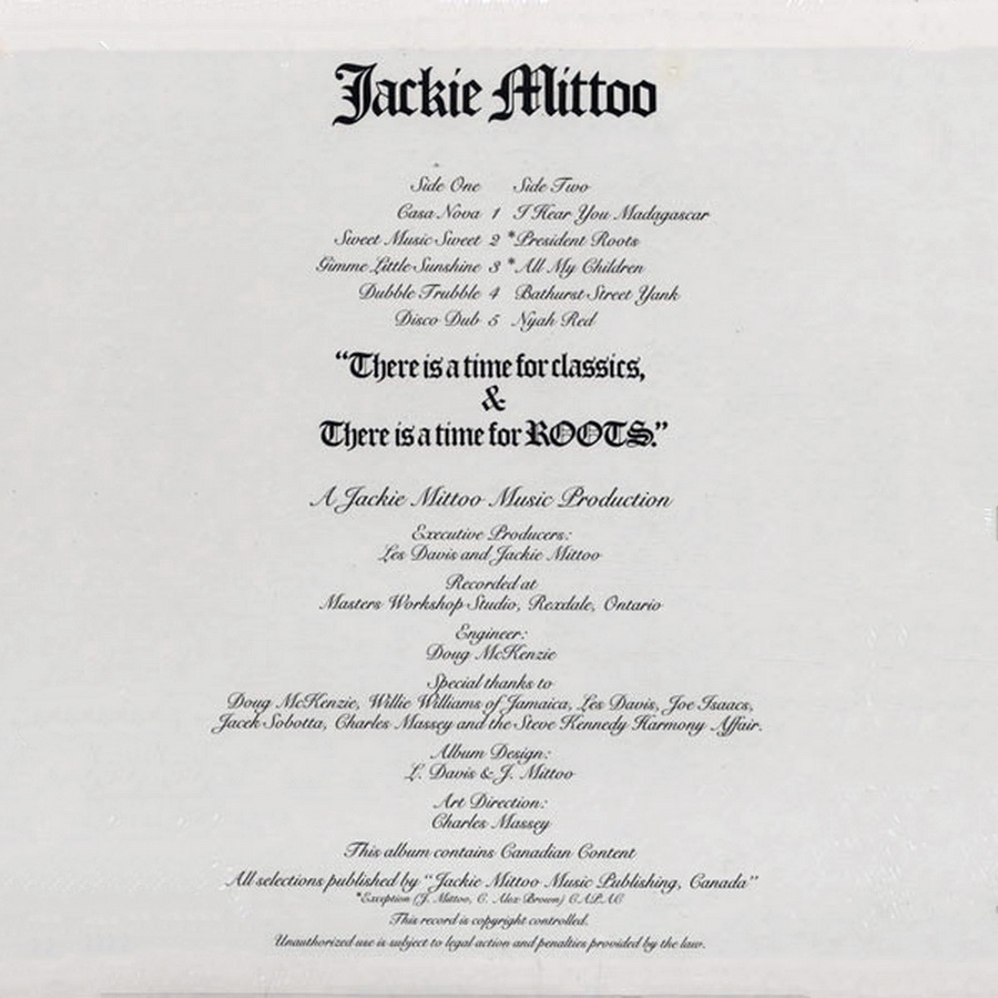 Album design by Les Davis and Jackie Mittoo