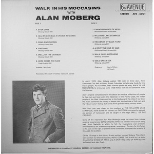 In April, 1970, Alan Moberg walked 100 miles in three days, from Vancouver City Hall to Hope, British Columbia, to help raise funds for the Indian people. As he walked, radio stations played his song, WALK IN HIS MOCCASINS, to encourage some 1,400 fellow walkers and donations from the listeners.