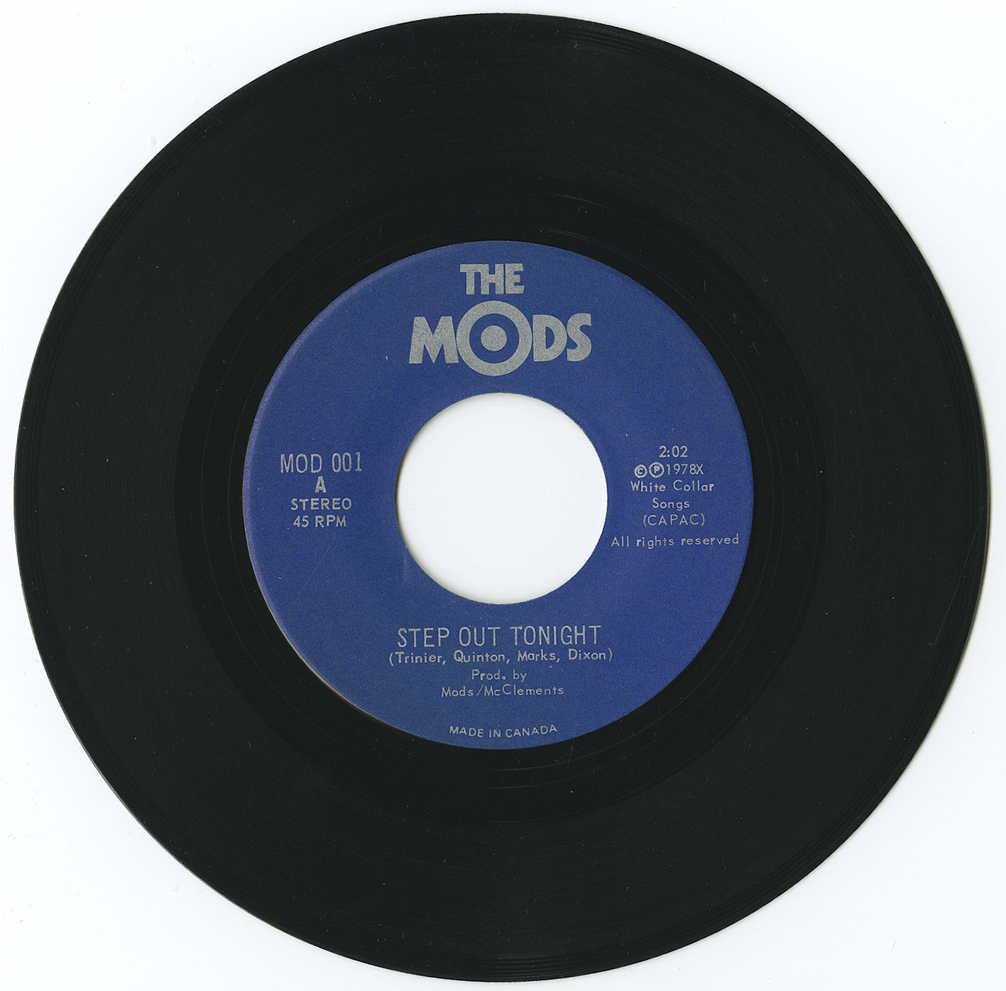 This 1978 seven-inch was their only release at the time, but was enough to net the lads an appearance in Colin Brunton's movie The Last Pogo – a filmed document of the Toronto punk scene. ‘Step Out Tonight’‘s crunching chords and blistering drumroll make it one of the better punk singles to come out of Canada back then, though Trinier’s vocals - more weird than quirky – may turn off a few ears. The mostly standard-issue mod on the flipside ratchets up the energy a notch. Still, this would have been a well spent two bucks at the time.
