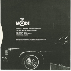 The Mods – Greg Trinier (vocals), Scott Marks (guitar), Mark Dixon (bass) and David Quinton (drums) – were one of Toronto's leading power-pop/punk bands of the late 70's. As well as headlining at clubs like The Horseshoe and The Edge, they opened for the Police, Ultravox, Squeeze and the Specials at larger venues.