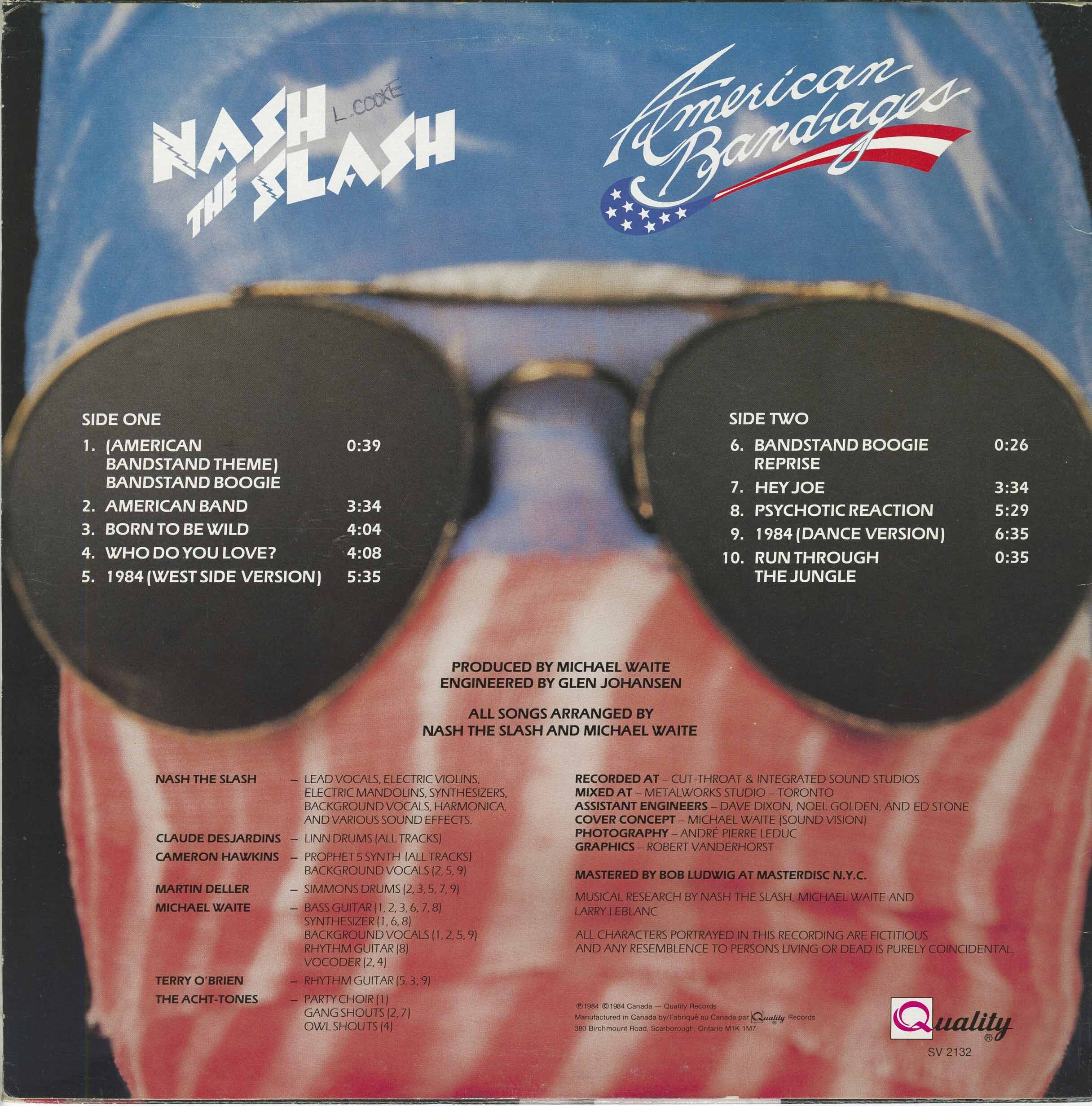 Nash The Slash: lead vocals, electric violin, electric mandolin, backing vocals, harmonica, various sound effects