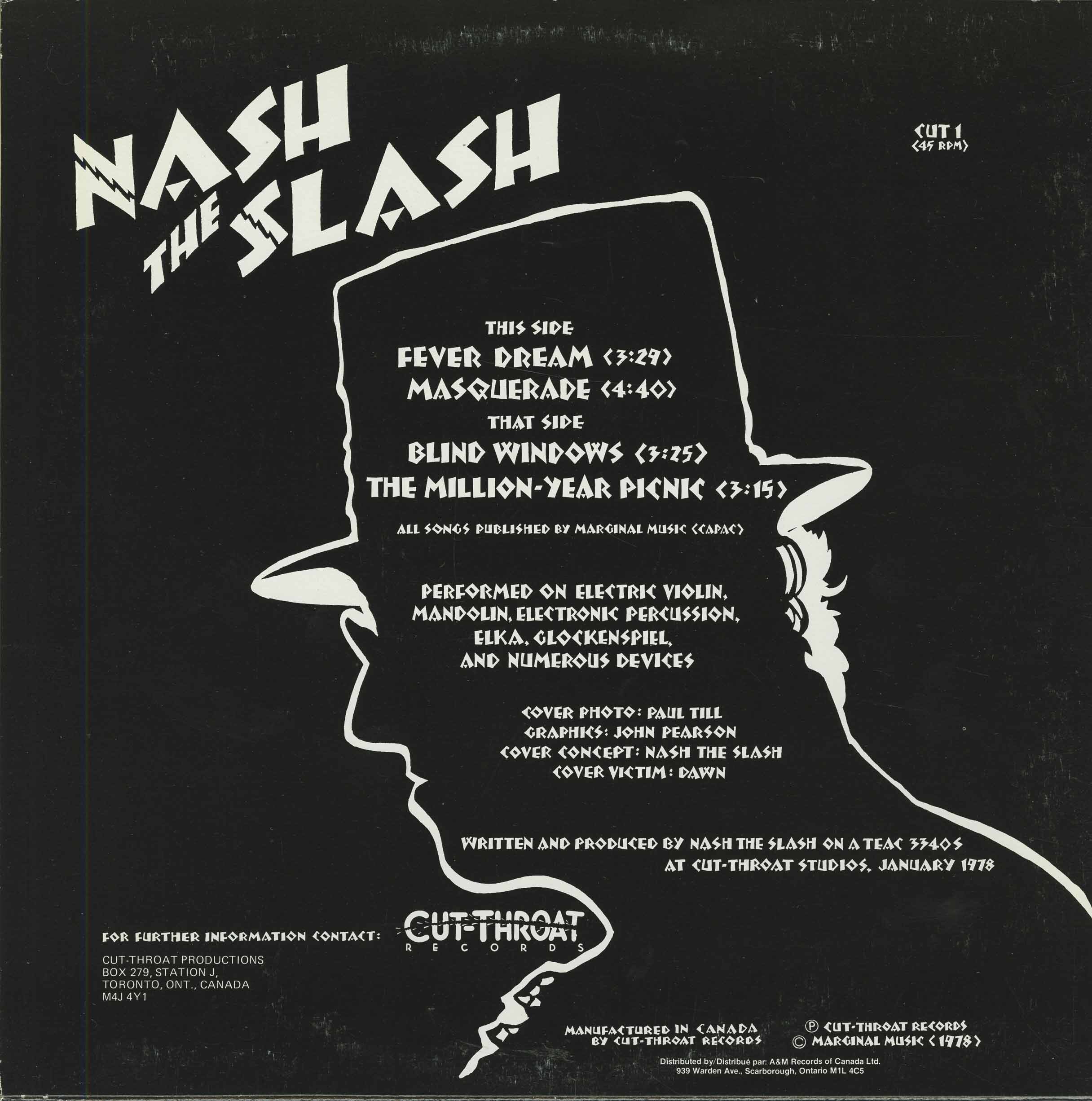 Nash The Slash: electric violin, mandolin, electronic drums, percussion, Elka synthesizer, glockenspiel, electronics and numerous devices