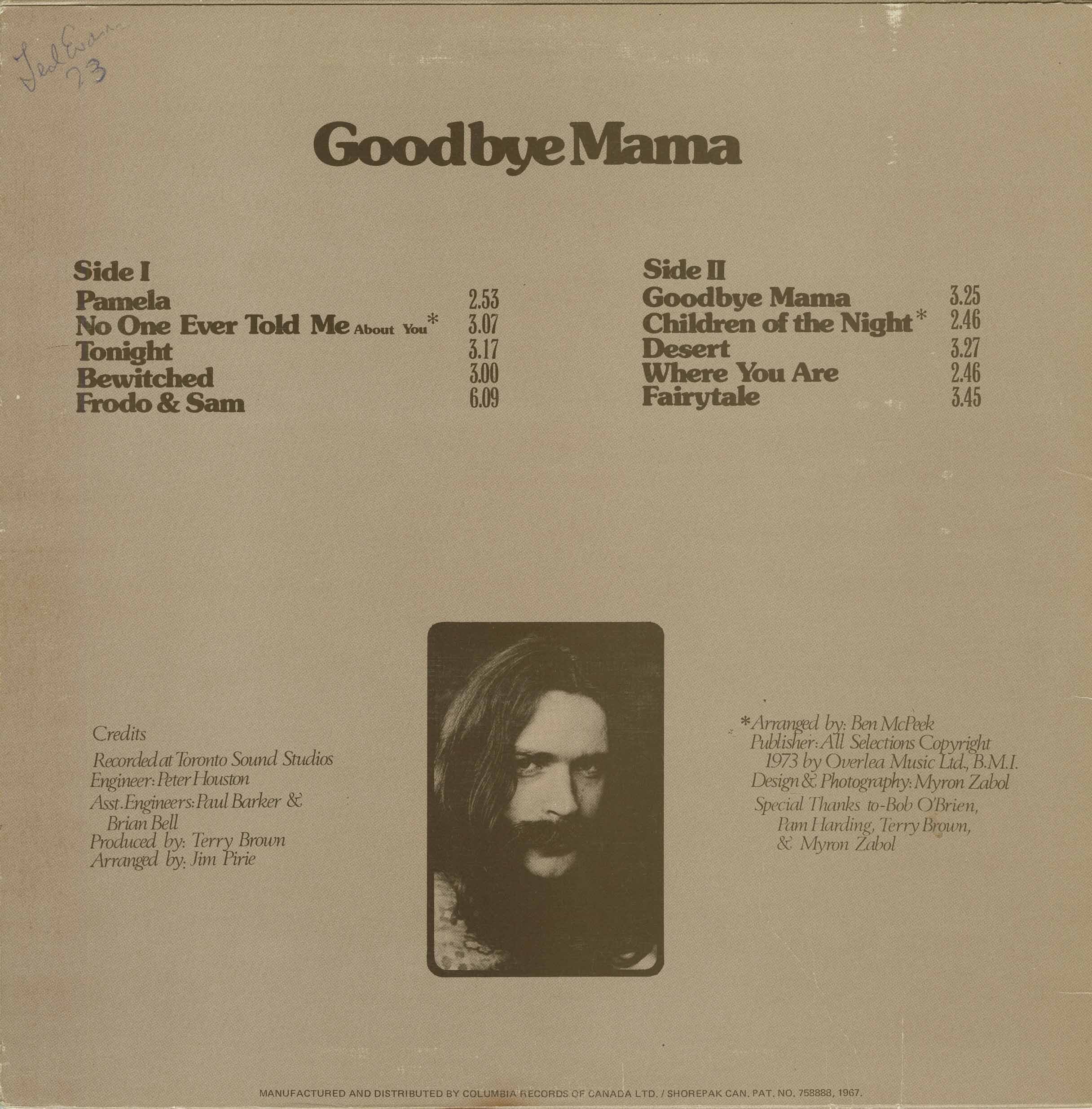 Recorded at Toronto Sound Studios, Toronto, Ontario