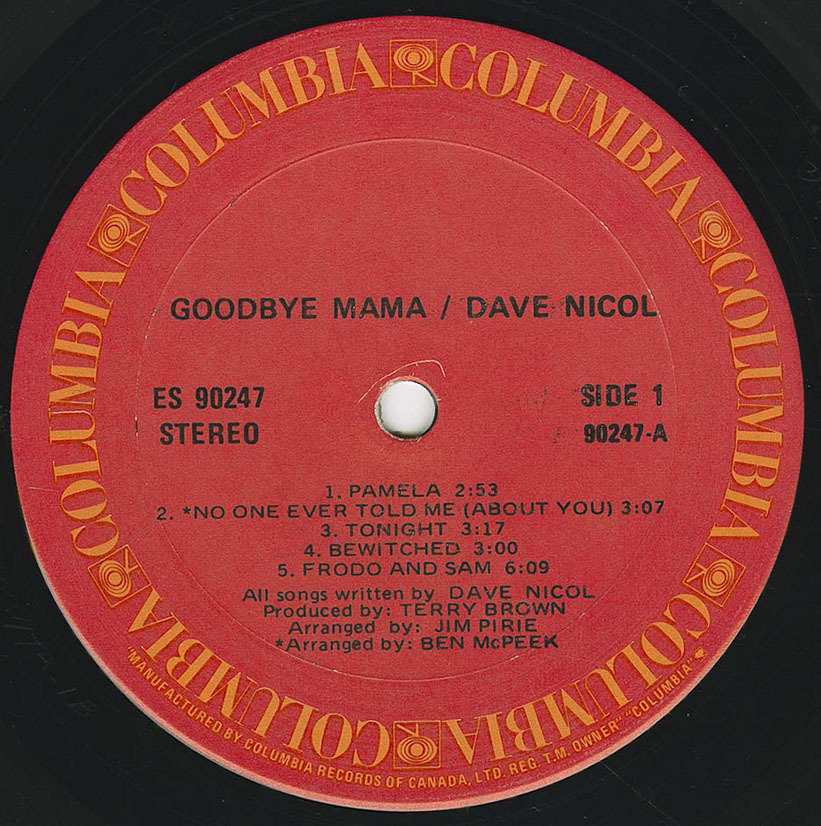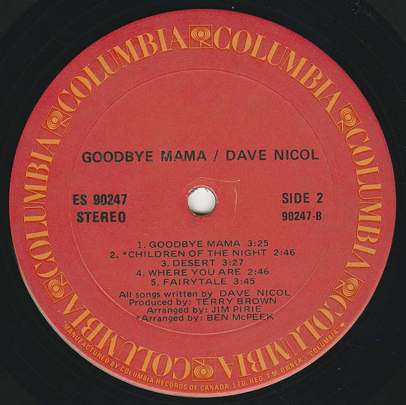 Dave Nicol is a singer/songwriter originally from St. John's, Newfoundland. He left there and lived in Toronto where he made the album. He then moved to Victoria, B.C. where he had a business doing fine woodworking and then he may have moved to Kelowna. He currently lives in the Caribbean.