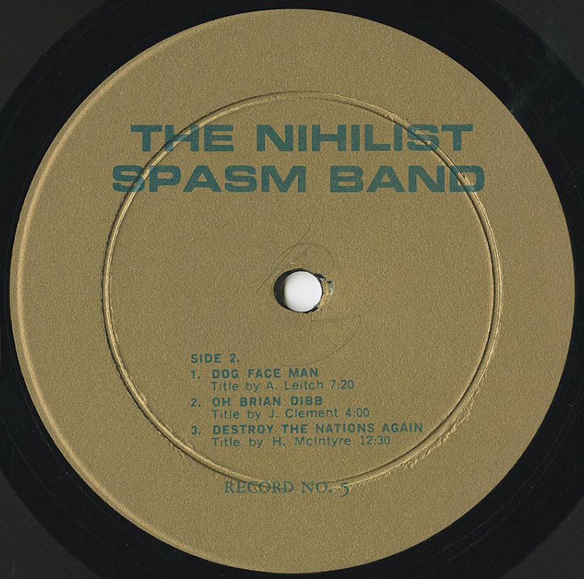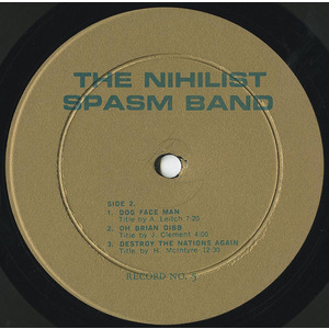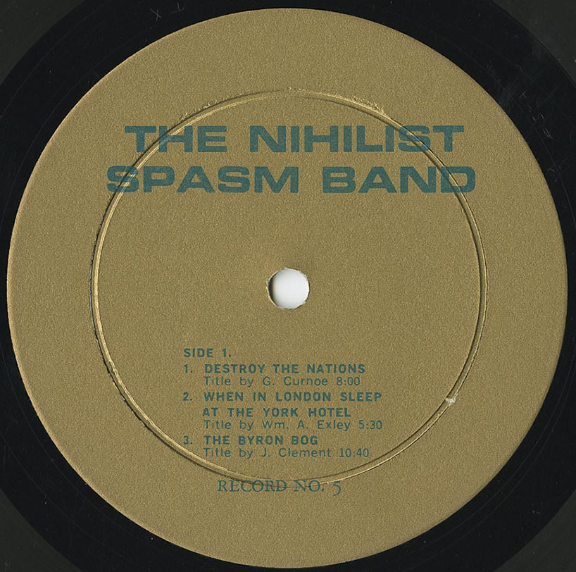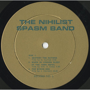 All of the instruments are electronically amplified (except the drums). The Nihilist Spasm Band is LOUD. This record should be played at high volume level.